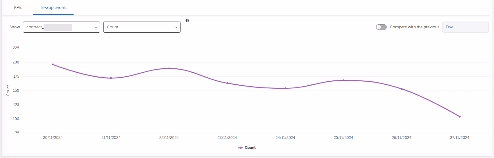- Events count — кількість виконаних подій у додатку. Деталізація, які саме події це були