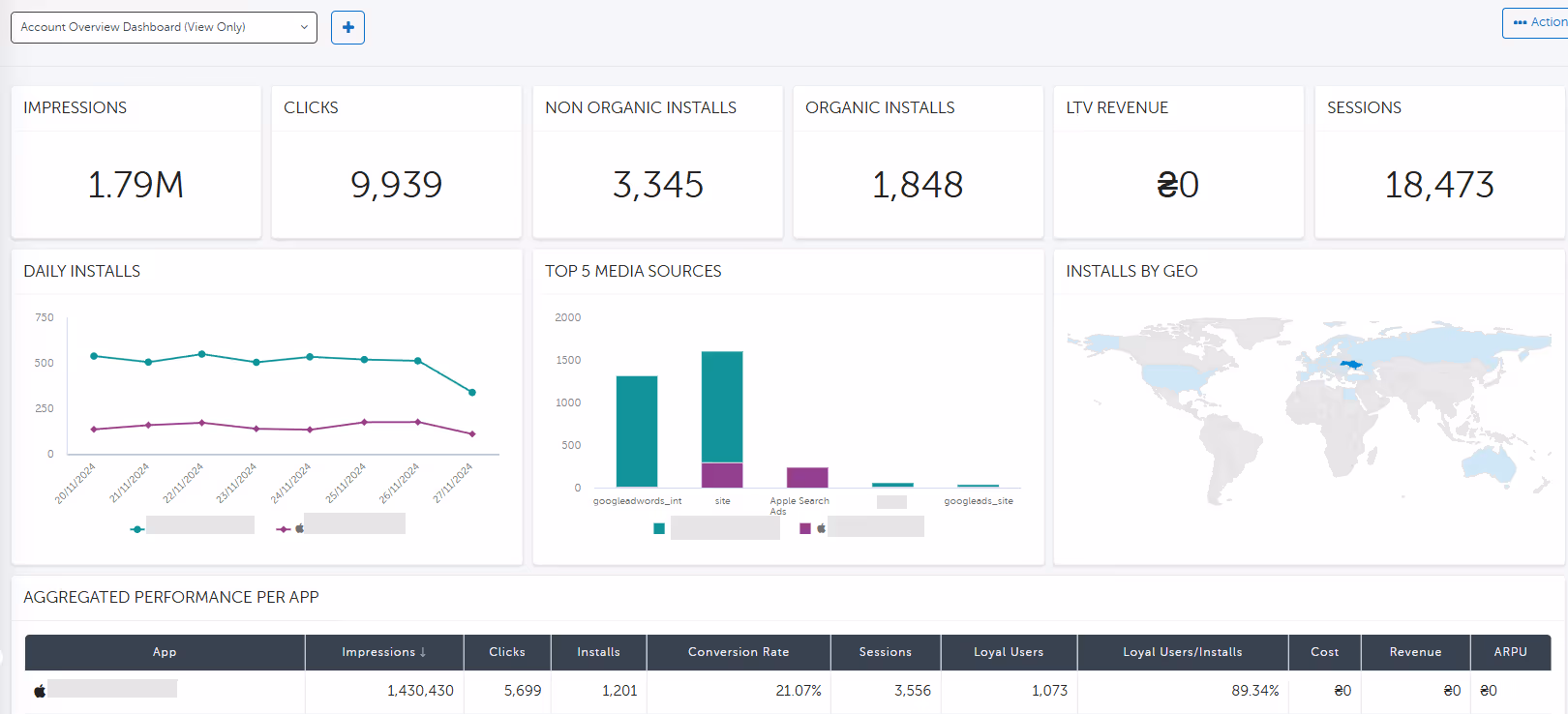 - Installs — кількість встановлень додатку (за кліком або показом)