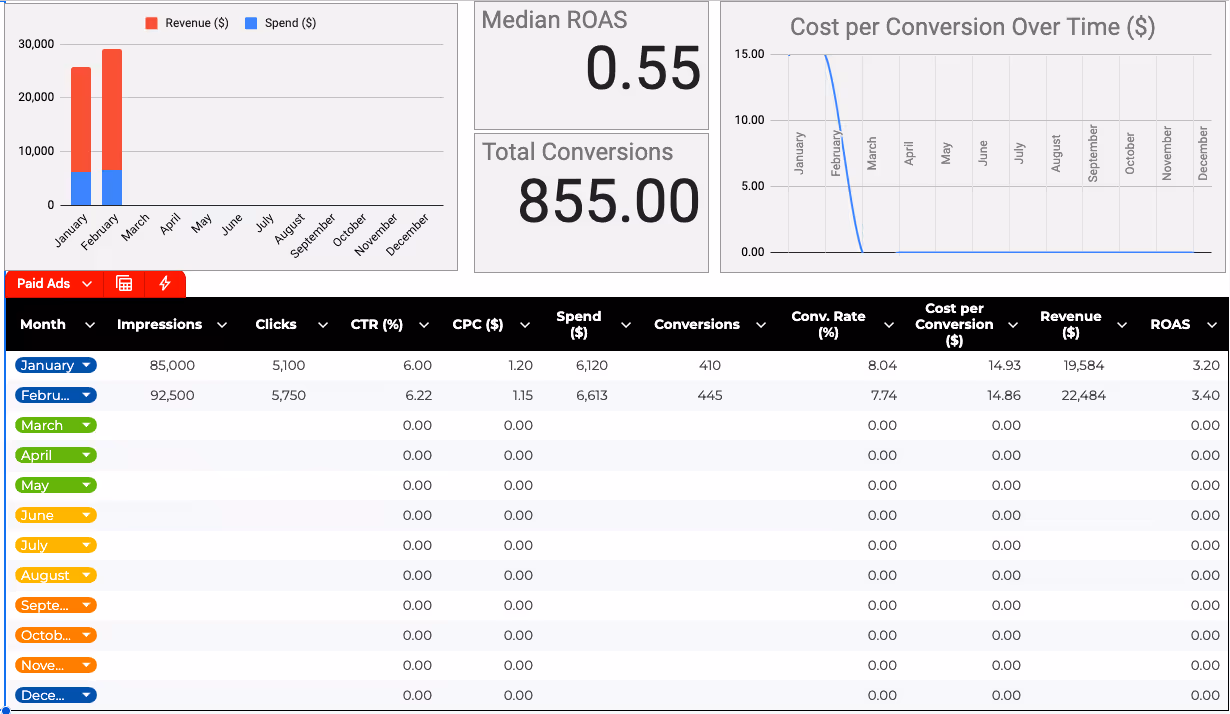 Щоб цього уникнути, потрібно зібрати показники в одному дашборді або таблиці. Так ви отримаєте цілісне уявлення про шлях клієнта від першого дотику до конверсії.