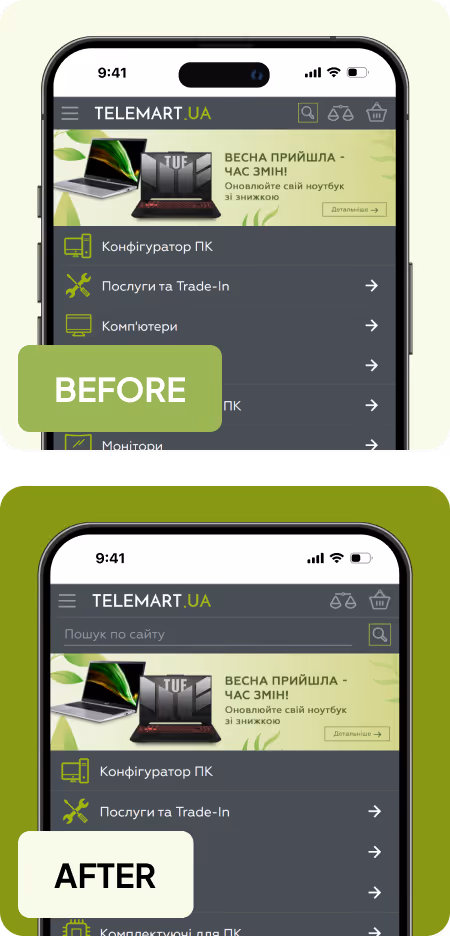 Ці дані чітко вказували на проблеми з навігацією та складність вибору товару з великого асортименту.