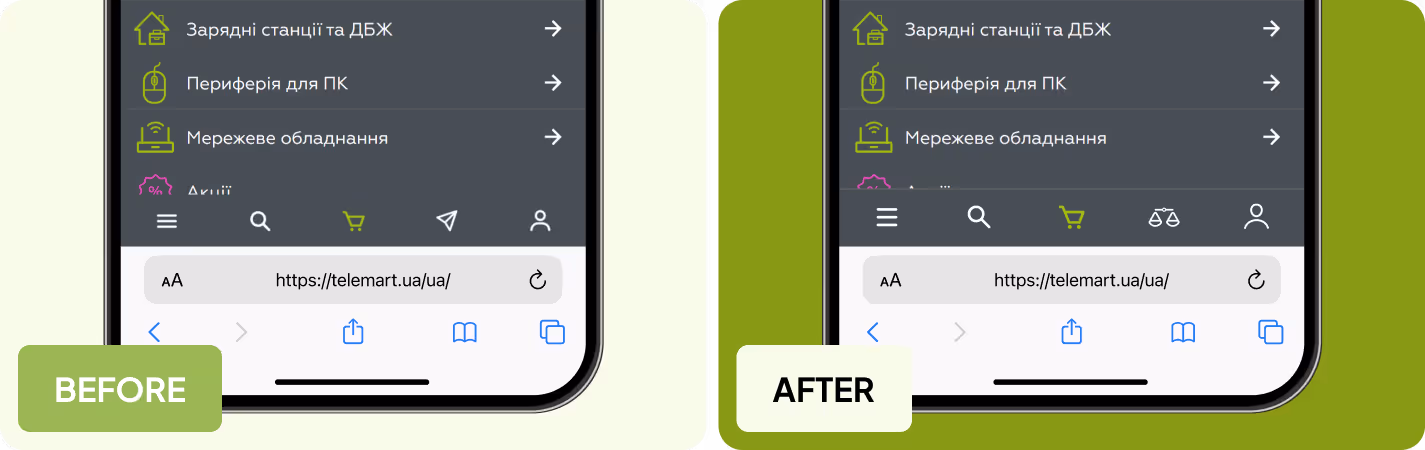 Додавання розділу «Порівняння» в нижню навігаційну панель збільшить Conversion Rate.