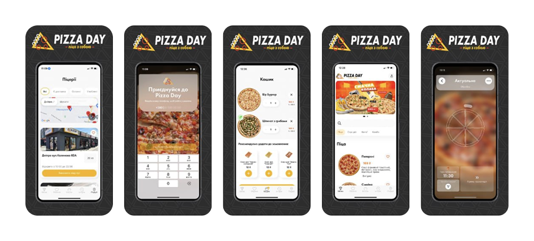 Pizza Day — застосунок для замовлення піци від найбільшої в Україні мережі Pizza Day у форматі take away, який дозволяє швидко знайти найближчий заклад, переглянути меню, акції, оформити замовлення в один клік.