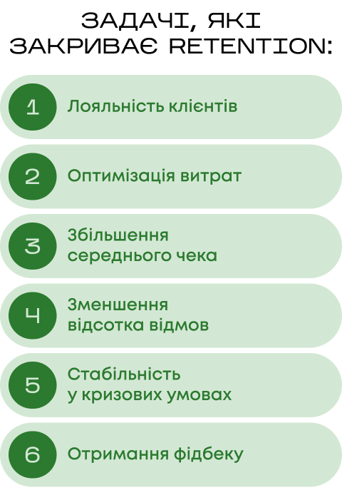Таким чином, канал Retention стає важливим елементом системної роботи з клієнтською базою та допомагає бізнесу отримувати більше доходу з кожного залученого користувача.