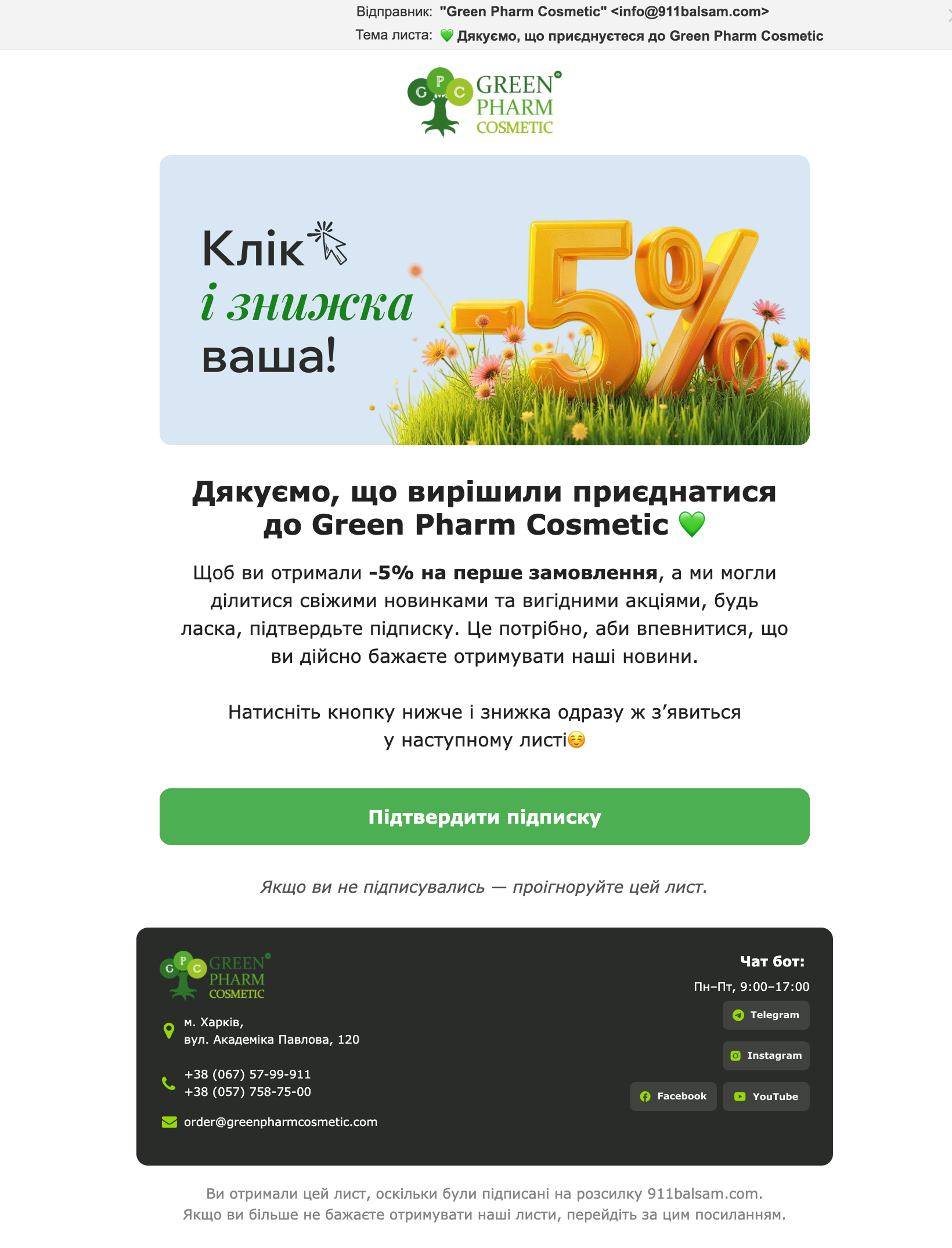 - Double Opt-In — підтвердження підписки, щоб база формувалась якісно