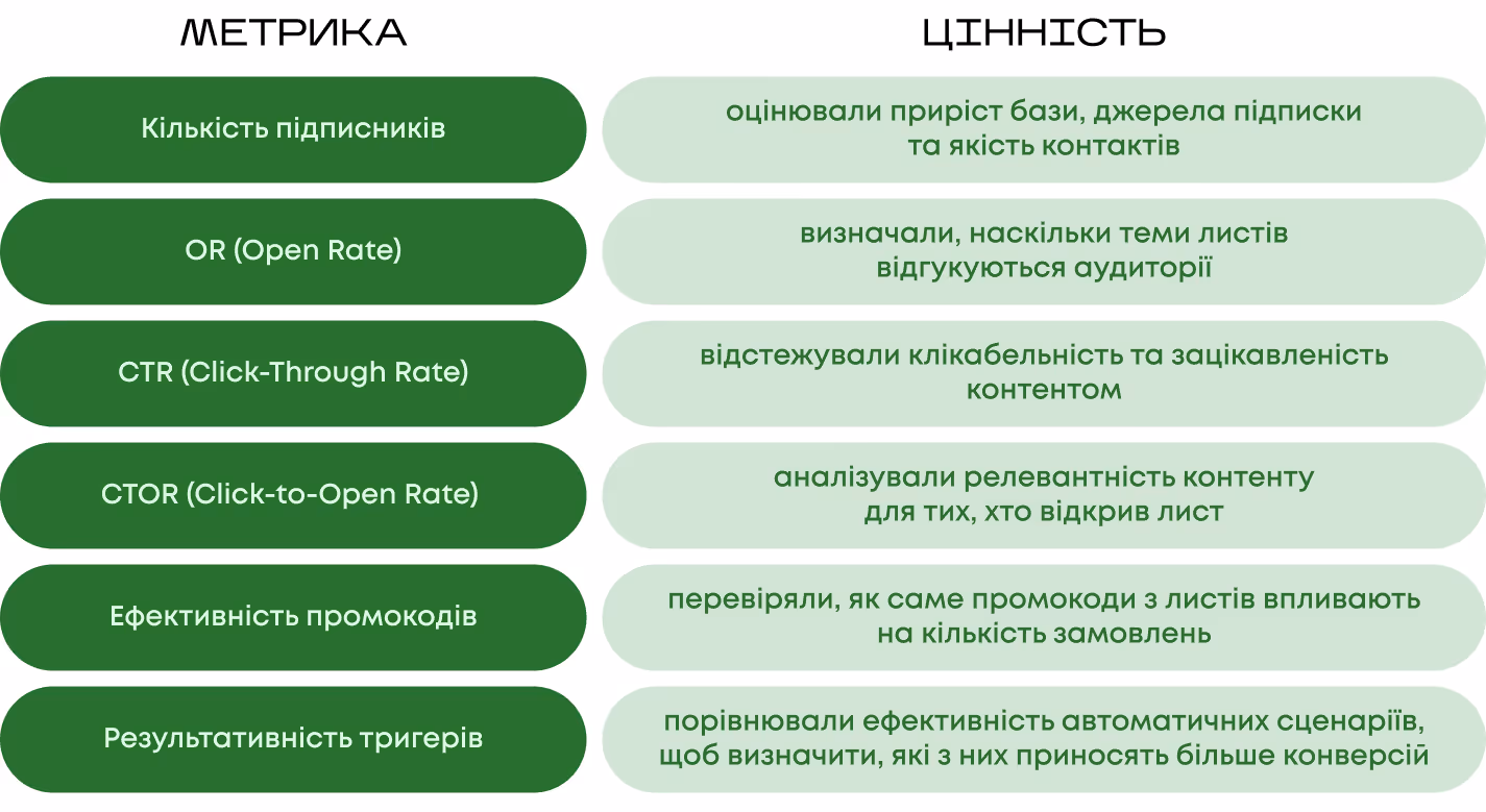 Завдяки аналітиці ми отримали прозоре розуміння ефективності Retention-комунікацій і могли відстежувати зв’язок між активністю підписників та зростанням повторних продажів.