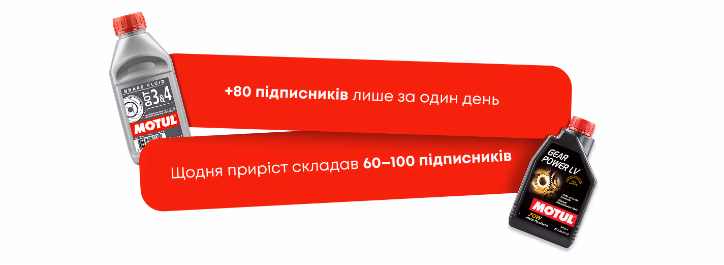 Наш досвід із MOTUL Україна підтвердив: класичні способи для збільшення спільноти в соціальних мережах можуть працювати, проте найкращі результати забезпечує лише рішення, підібране під специфіку конкретного бізнесу.