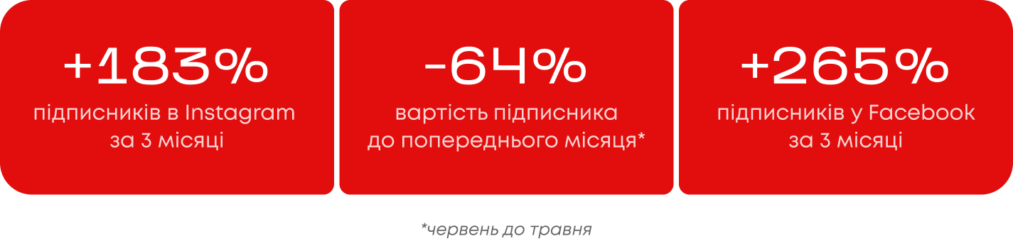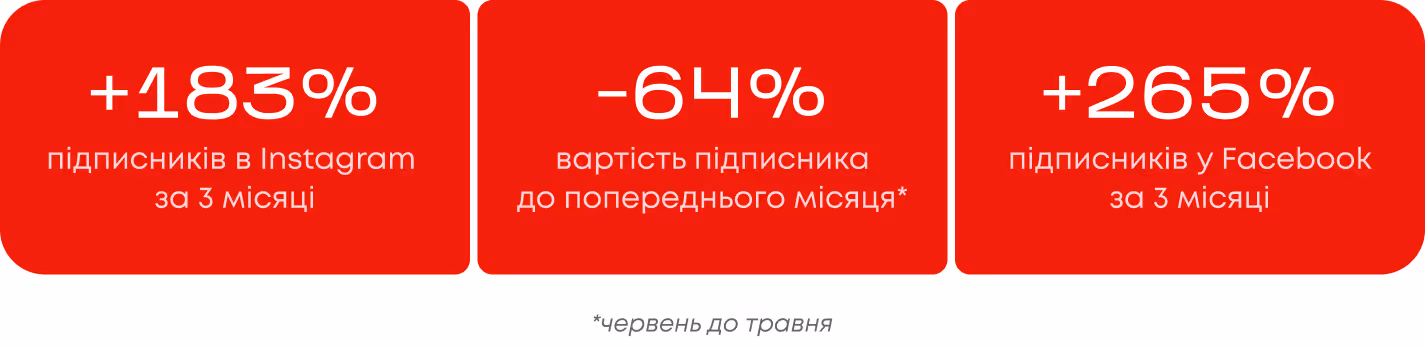 Завдяки цьому нам вдалося подвоїти кількість підписників місяць до місяця та зменшити вартість підписки вдвічі.